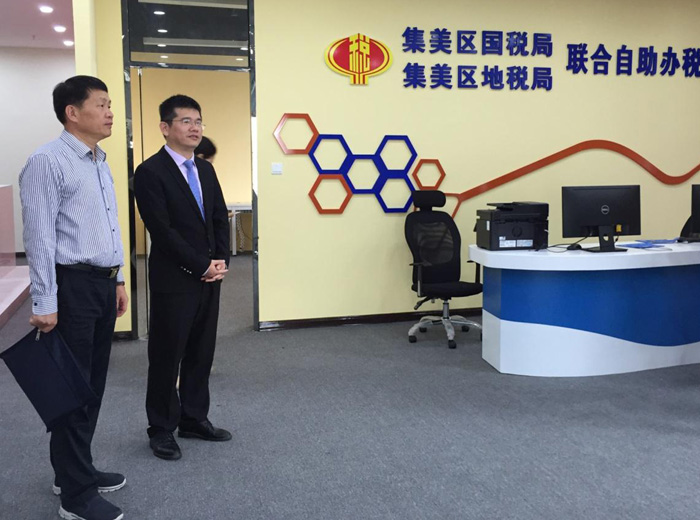 洪龍泉副局長等一行參觀海峽兩岸青年創(chuàng)業(yè)基地國地稅聯(lián)合服務(wù)站