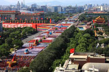 Applause and cheers engulfed Tian'anmen Square Thursday morning when a float featuring the scale model of Taiwan's landmark 101 Tower and colorful local fruits appeared at the celebrations of New China's 60th founding anniversary.