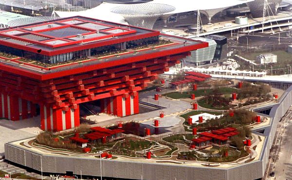 Aerial view of pavilions at Shanghai Expo