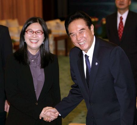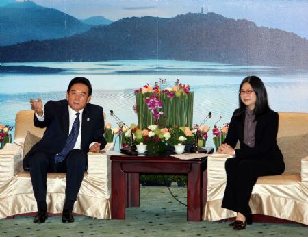 Chen Yunlin (L), president of the Chinese mainland's Association for Relations Across the Taiwan Straits (ARATS), meets with Taiwan's mainland affairs chief Lai Shin-yuan in Taichung of southeast China's Taiwan, Dec. 22, 2009. (Xinhua/Yuan Man)