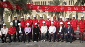 楊大使代表中國駐沙使館向施工現場干部職工致以誠摯的新春問候。楊大使鼓勵大家建一流工程,創一流業績,為祖國爭光。