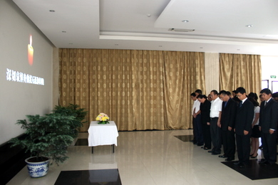 2010年8月15日上午11時,駐尼泊爾使館舉行哀悼儀式,全體館員衣著莊重、嚴肅、整潔,為在甘肅舟曲特大山洪泥石流災害中遇難的同胞默哀。