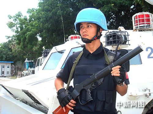 圖為中國維和警察防暴隊隊員。 chinanews發 攝
