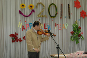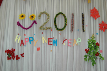 2010年12月30日晚,駐埃及使館活動大廳張燈結彩,充滿了節日的喜慶氣氛。全體館員歡聚一堂,載歌載舞,喜迎2011。