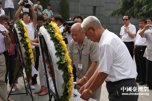 海內(nèi)外黃埔軍校同學(xué)會的校友、親屬、專家學(xué)者向遇難同胞敬獻(xiàn)花圈。(中國臺灣網(wǎng) 肖燕 攝)