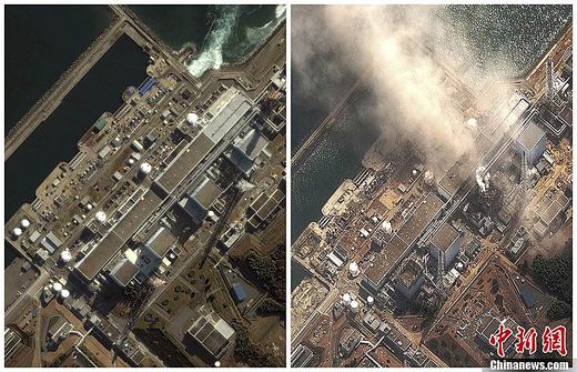 日本政府表示,當(dāng)?shù)貢r(shí)間15日晨6時(shí)10分左右,福島第一核電站2號(hào)反應(yīng)堆附近傳來(lái)爆炸聲。早些時(shí)候的報(bào)道指出,福島第一核電站2號(hào)反應(yīng)堆容器出現(xiàn)部分破損,這表明可能導(dǎo)致更為嚴(yán)重的核泄漏。圖為福島第一核電站爆炸前(左)后(右)對(duì)比圖。