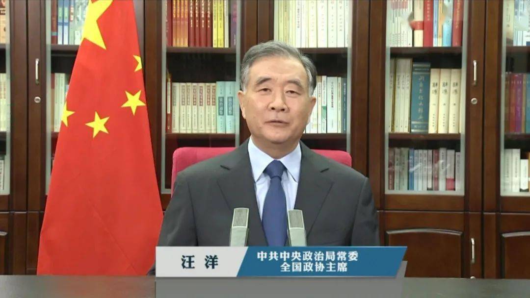 論壇大會上,中共中央政治局常委、全國政協(xié)主席汪洋通過視頻發(fā)表致辭。