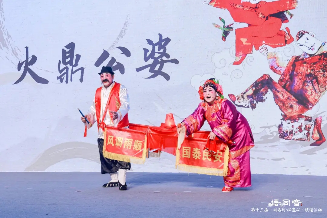 《童聲謠韻·炫舞傳情》表演中,經(jīng)典童謠《月光光》遇上現(xiàn)代爵士樂,碰撞出別樣火花;非遺節(jié)目串燒《戲脈同歡》中,被譽為閩南地區(qū)最“魔性”的民俗表演“火鼎公火鼎婆”,以詼諧的舞步、地道的鄉(xiāng)音,將吉祥話化作躍動的節(jié)奏;在一聲聲喜娘喝彩中,閩臺婚俗《囍話同聲》帶領(lǐng)觀眾順著古老的“迎娶文書”,走進(jìn)閩臺血脈相連的婚俗盛宴。喜慶的氛圍中,臺灣宗親用鄉(xiāng)音展示家鄉(xiāng)的婚俗吉祥話,聲聲方言祝福不僅是對美滿生活的期盼,更訴說著閩臺同根同源、同喜同慶。