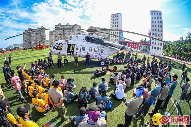 參會選手與嘉賓觀看直升機(jī)應(yīng)急救援。