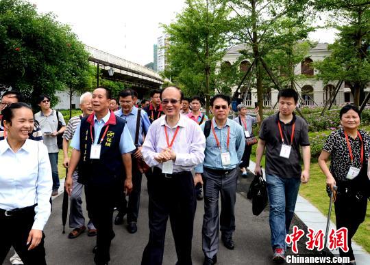 臺(tái)灣中華統(tǒng)一促進(jìn)黨主席張馥堂(圖中)、中華統(tǒng)一促進(jìn)黨沈葆楨黨部主委劉其叢及其代表團(tuán)一行,參觀參觀位于福州馬尾的官?gòu)d池、前后學(xué)堂等馬尾船政文化遺址。 記者劉可耕 攝