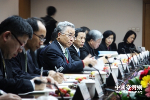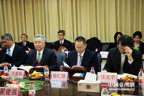 在河北銀行總部辦公室內(nèi),以許嘉棟為首的“臺灣金融團(tuán)”成員們對河北銀行充滿興趣。(中國臺灣網(wǎng) 馬迪 攝)