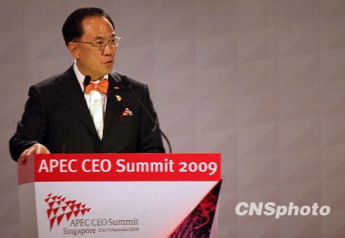 十一月十三日,亞太經(jīng)濟(jì)合作組織(APEC)工商領(lǐng)袖峰會(huì)(CEO Summit)在新加坡新達(dá)城國(guó)際會(huì)展中心揭幕。香港特區(qū)行政長(zhǎng)官曾蔭權(quán)當(dāng)日上午參與大會(huì)的對(duì)話發(fā)言。 中新社發(fā) 鄭祚聲 攝