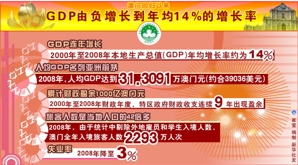 澳門回歸以來GDP由負(fù)增長到年均14%的增長率
