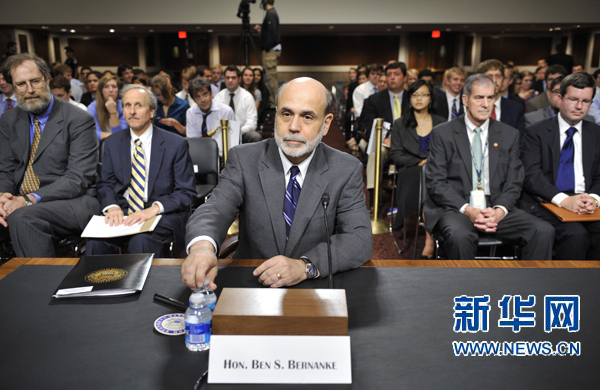 7月21日,在美國首都華盛頓國會山,美國聯邦儲備委員會主席本·伯南克出席參議院銀行、住房和城鎮事務委員會就美聯儲半年金融政策報告舉行的聽證會。新華社記者張軍攝