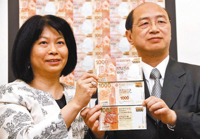 香港金融管理局昨日公布,由中銀香港、渣打及匯豐銀行發行的2010版港幣千元新鈔票,將于下月7日推出市面。新版千元鈔票與現時流通的一樣,顏色同為金黃色,但新加入多種最尖端的防偽技術,及強化沿用的防偽特征。