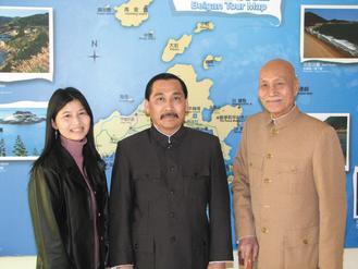 長相分別貌似孫中山、蔣介石的葉重順(中)、李登科(右),兩人跨海到連江縣參加慶祝辛亥百年紀念活動。所到之處,成為馬祖民眾爭相合照的模特兒。 圖片來源:臺灣《聯合報》