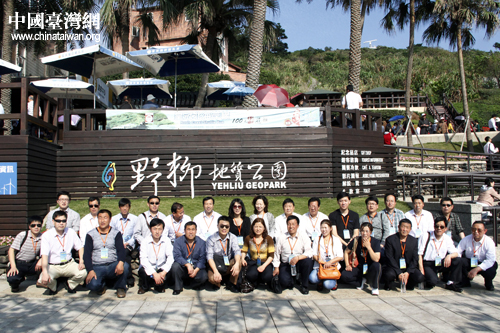 代表團成員在臺灣野柳地質公園合影留念。(中國臺灣網 于斯文 攝)