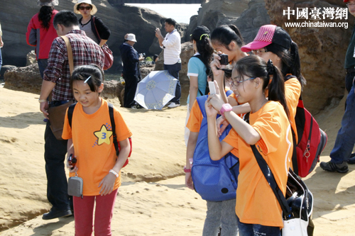 臺灣青少年在野柳地質公園體驗獨特自然風貌。 (中國臺灣網 于斯文 攝)