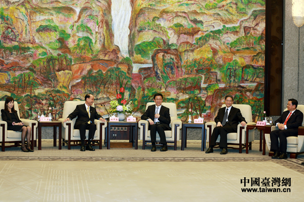 中共中央政治局委員、上海市委書記韓正(右)21日下午會見了海協會、海基會第九次會談協商代表團成員。(中國臺灣網 王偉 攝)