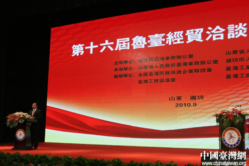 中國臺灣網9月1日濰坊消息 9月1日上午,第十六屆魯臺經貿洽談會暨第七屆臺商大會在山東濰坊隆重開幕。本次魯臺經貿洽談會由國務院臺灣事務辦公室與山東省人民政府共同主辦。