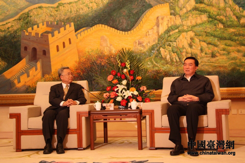 11月29日,河北省省長陳全國(右)會見臺灣金融服務業聯合會總會理事長許嘉棟為首的“臺灣金融團”。(中國臺灣網記者 馬迪 攝)