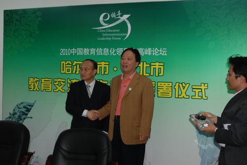 5月26日下午,“哈爾濱市·臺北市教育交流合作備忘簽署儀式”在哈爾濱市第十四中學舉行。這是“中國教育信息化領導力高峰論壇”為兩岸教育交流搭建的又一溝通平臺。