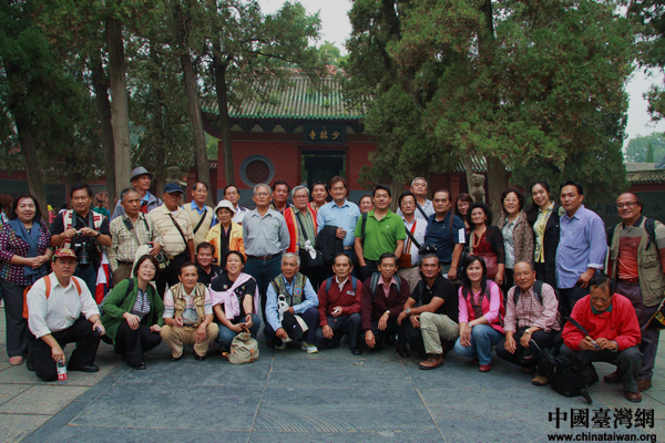 臺灣少數民族長老頭目們在少林寺前合影留念。(中國臺灣網 芮益芳 攝)