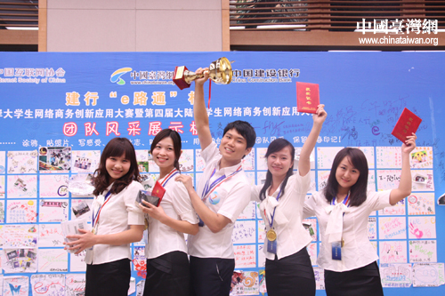中國臺灣網9月20日北京消息 建行“e路通”杯首屆海峽兩岸大學生網絡商務創新應用大賽兩岸總決賽頒獎典禮今日在北京舉行。來自兩岸23所高校共23支隊伍獲獎,其中4支臺灣高校隊伍的成績名列前茅。來自西安郵電學院的“隨風E起沖”團隊憑借出色的表現,繼奪取大陸賽區首魁后,越戰越勇,再奪兩岸賽區冠軍。