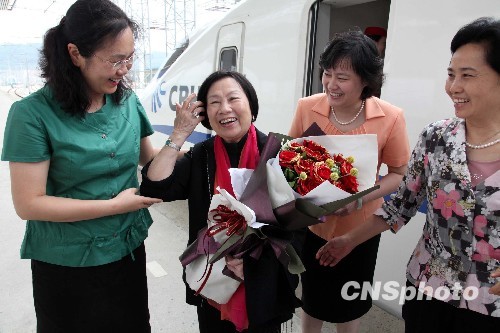 6月21日,臺(tái)灣中華婦聯(lián)總會(huì)主任委員辜嚴(yán)倬云女士在福建省婦聯(lián)領(lǐng)導(dǎo)的陪同下,乘動(dòng)車從廈門回到闊別73年的家鄉(xiāng)福州,受到福州市委統(tǒng)戰(zhàn)部、市臺(tái)辦、市婦聯(lián)官員的熱烈歡迎。 中新社發(fā) 楊婀娜 攝