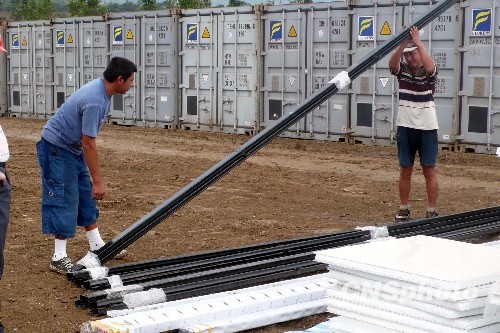 8月24日,大陸第2批共7名援建技術人員抵達臺灣災區。首批抵達的技術人員楊云表示,上百套活動板房的搭建是一項系統、復雜的工作,希望臺灣方面盡早投入更多人力參與施工。 中新社發 劉舒凌 攝
