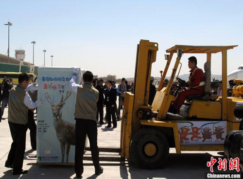 臺灣贈大陸梅花鹿和長鬃山羊“出關”