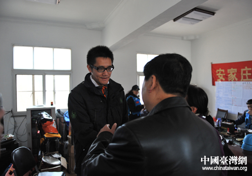北京市臺辦副主任高振生看望慰問參與尋找走失臺胞的搜救人員。(北京通訊員 丁磊 攝)