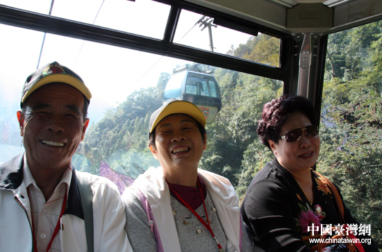 臺灣嘉賓乘觀光纜車登頂天子山。(中國臺灣網(wǎng) 王思羽 攝)