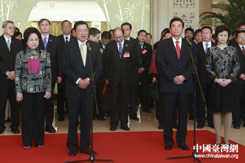 圖片說明:出席第七次兩岸兩會(huì)領(lǐng)導(dǎo)人會(huì)談的海基會(huì)董事長江丙坤一行今日中午抵達(dá)天津,海協(xié)會(huì)會(huì)長陳云林及相關(guān)人員在天津迎賓館歡迎海基會(huì)協(xié)商代表團(tuán)的到來。(中國臺灣網(wǎng) 陳佳慧 攝)
