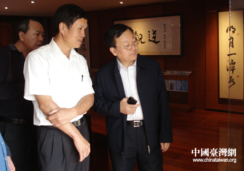 撫順市委副書記喻國偉一行在參觀鄉林集團大草嶺企業文化。(圖片來源:撫順市臺辦)