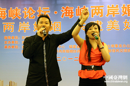 “有看見思慕的人,惦在阮夢中,難分難離,引我對著汝,更加心綿綿……”溫情動聽的閩南語歌曲由臺灣歌手熊天平與北京歌手楊洋夫婦這對“兩岸配”唱來格外情真意切。“如果我的閩南語發音有問題,那只能說是熊老師教的不好”,楊洋的插科打諢引起了全場會心的掌心與笑聲,如何快速的融入對方的語言環境正是許多兩岸婚姻當事人所面臨的最大問題。