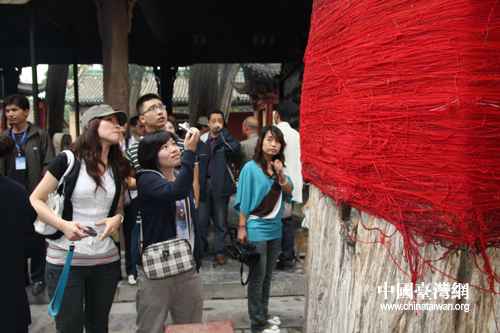 中國(guó)臺(tái)灣網(wǎng)8月23日運(yùn)城消息 感受中華道德文化的源頭,體味中華傳統(tǒng)美德的脈絡(luò),22日,臺(tái)灣青年團(tuán)一行來(lái)到了位于山西省運(yùn)城市的舜帝陵和關(guān)公廟,祭拜炎黃子孫共同的祖先。
