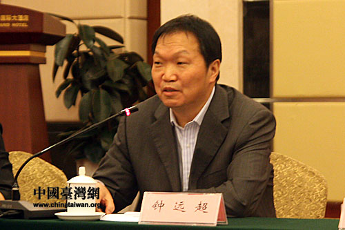 2011海峽兩岸記者“錦繡天府川南行”聯合采訪活動啟動儀式上,四川省臺辦副主任鐘遠超歡迎兩岸記者的到來,并介紹四川省情及對臺工作情況。(中國臺灣網 馬迪 攝)