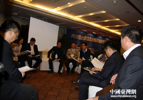 參加2012連臺兩地杰出青年創意創業論壇的與會人員交流座談。(圖片來源:大連市臺辦)