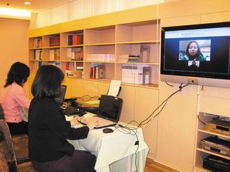 士林地檢署偵辦和信醫(yī)院醫(yī)師黃麟杰在大陸涉嫌殺害情婦案,以遠程視頻制做大陸5名證人筆錄。地檢署昨天模擬當時視頻偵訊情形。圖片來源:臺灣《聯(lián)合報》