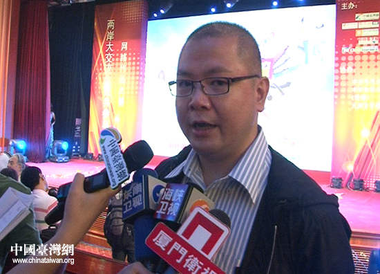 “兩岸大交流—你我共參與”網(wǎng)絡(luò)作品大賽7月29日下午在北京啟動。臺灣聯(lián)合新聞網(wǎng)事業(yè)發(fā)展部經(jīng)理莫家驊在啟動儀式后接受記者采訪。(中國臺灣網(wǎng) 董憲超 攝)