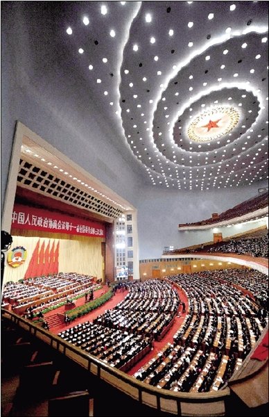 昨天下午,全國政協十一屆三次會議在北京人民大會堂開幕。本報記者 范繼文 攝