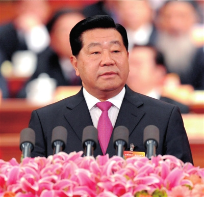 全國政協主席賈慶林作工作報告。(來源:京華時報 攝影:新華社記者黃敬文)