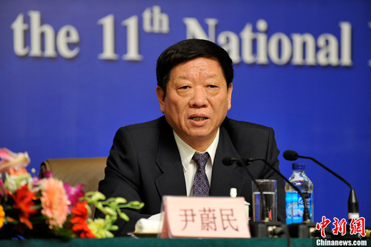 3月8日上午9時,梅地亞新聞中心。人力資源和社會保障部部長尹蔚民、人力資源和社會保障部副部長胡曉義就“就業(yè)和社會保障體系建設”話題答記者問。圖為人力資源和社會保障部部長尹蔚民答記者問。中新網記者 楊磊 攝