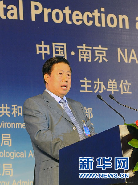 7月3日,由環(huán)境保護(hù)部、國(guó)家氣象局、國(guó)家能源局、聯(lián)合國(guó)環(huán)境規(guī)劃署和中國(guó)2010年上海世博會(huì)執(zhí)行委員會(huì)共同主辦的上海世博會(huì)第四場(chǎng)主題論壇——“環(huán)境變化與城市責(zé)任”在南京開(kāi)幕。圖為環(huán)境保護(hù)部部長(zhǎng)周生賢在論壇上演講。 新華社記者 陳琪攝