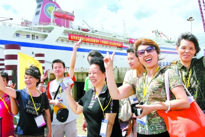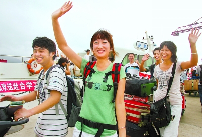 2009年9月16日,福建首批23名在校大學(xué)生從馬尾港登船赴臺灣高校學(xué)習(xí)。記者 林輝 攝