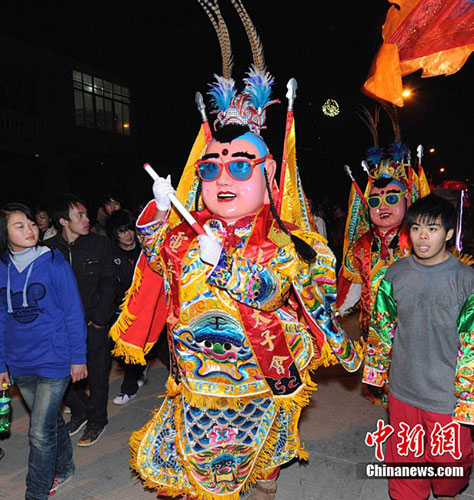 圖為臺灣北港朝天宮攜民俗特色節目《電音三太子》亮相“媽祖神燈平安游”。