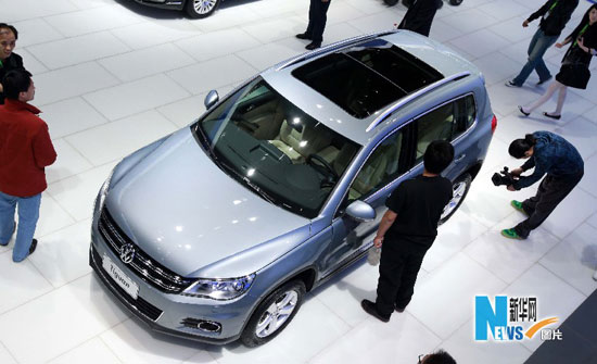 4月24日,記者在2010(第十一屆)北京國際汽車展覽會上拍攝上海大眾的SUV汽車——途觀(Tiguan)。新華社記者龐興雷攝