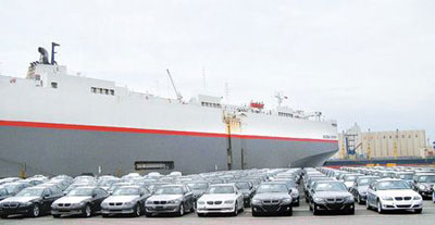 據(jù)臺灣《中國時報》報道,島內(nèi)經(jīng)濟景氣復蘇,臺中港進口車數(shù)量屢創(chuàng)新高!利比里亞籍“地球精靈號”汽車船,20日載來849輛總價值約26億元的奔馳、BMW及保時捷等高級進口轎車。港務局預估2010年進口“雙B”(奔馳和寶馬)約達8000輛,5月份至今累計達1700多輛,創(chuàng)下開港34年來單月新高紀錄。