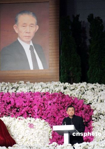 2008年11月8日,臺灣經營之神、臺塑關系企業創辦人王永慶告別儀式在臺北縣林口的長庚大學活動中心舉行,圖為王永慶長子王文洋在告別式最后,代表全體家屬致答謝詞。  中新社發 臺塑 攝